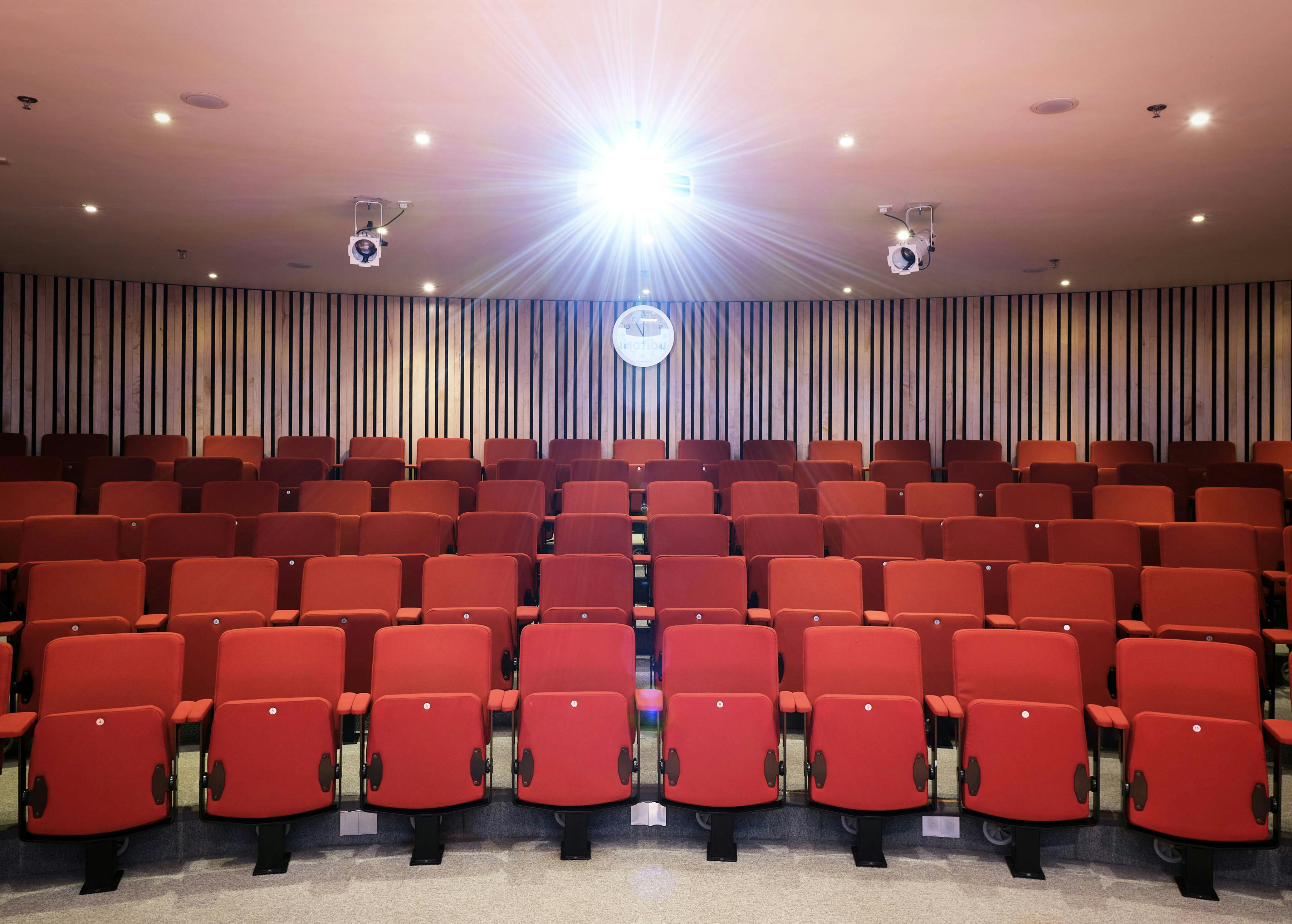 The Auditorium seats 120, with tiered seating that provides excellent sightlines. It is equipped with comfortable seats that include generous legroom. It is an intimate auditorium space, allowing speakers to interact with the audience, with a comfortable and welcoming atmosphere.