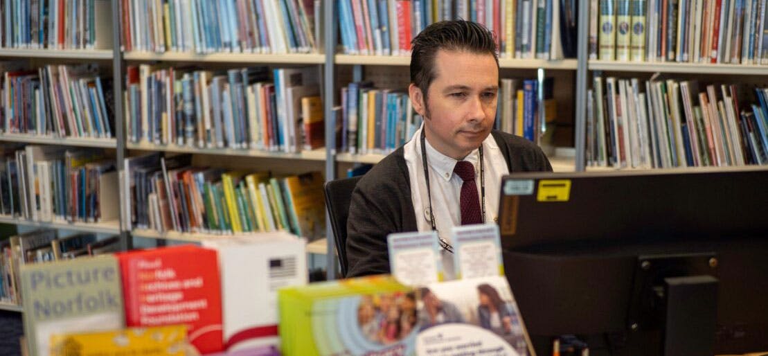 Norfolk Heritage Centre is on the second floor of the Norfolk and Norwich Millennium Library.