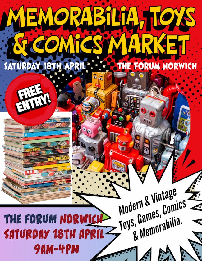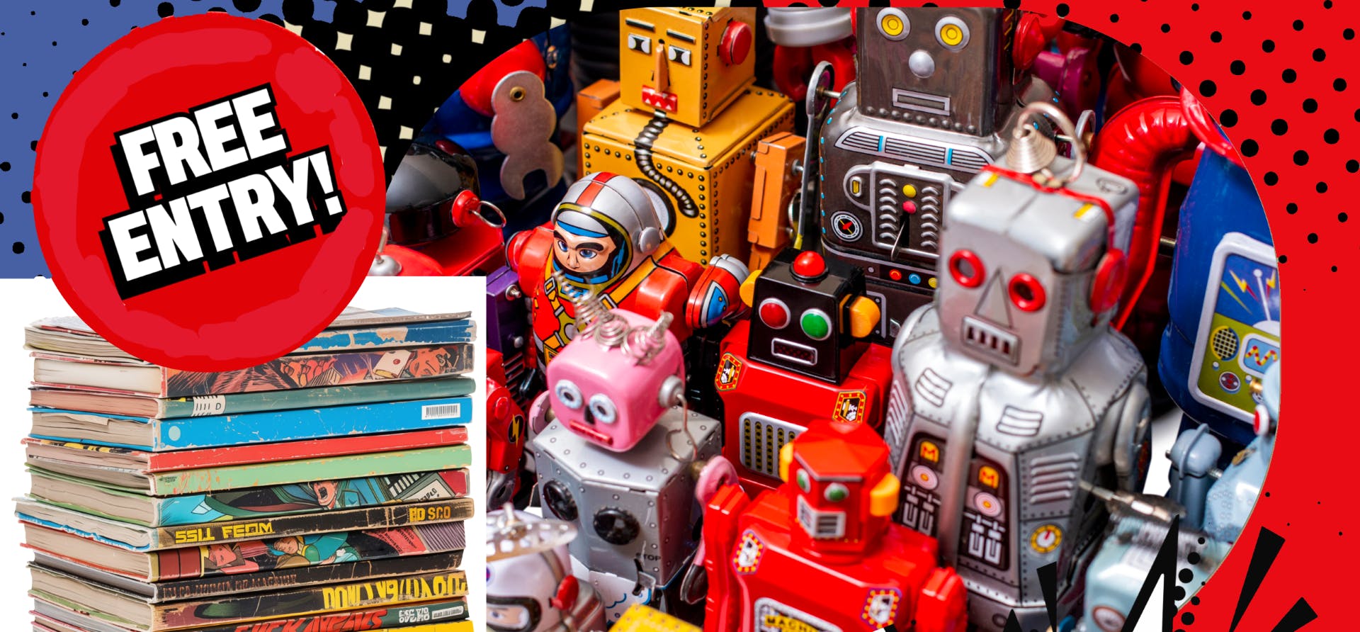 A one day memorabilia and collectors market including vintage and modern toys, games, Pokemon trading cards, pop culture art, comics and more.